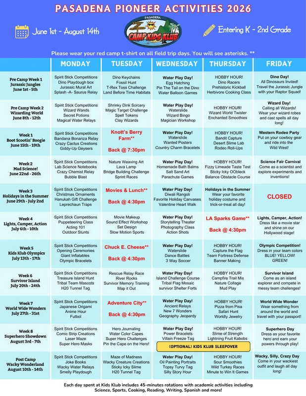 Our summer camp runs June 1st through August 14th, Monday through Friday, from 7:30 AM to 6:00 PM, giving you a full day of fun and learning for your child. Sign up by the week to best fit your family’s schedule, and discover a new theme and all-new activities every week—from exciting games to creative projects, your camper will have a fresh adventure to enjoy each time they come!
