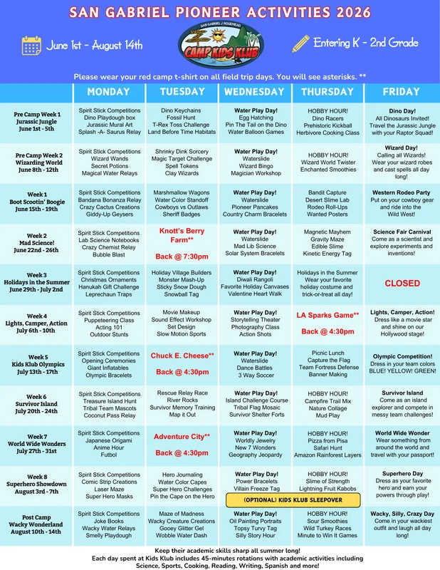 Our summer camp runs June 1st through August 14th, Monday through Friday, from 7:30 AM to 6:00 PM, giving you a full day of fun and learning for your child. Sign up by the week to best fit your family’s schedule, and discover a new theme and all-new activities every week—from exciting games to creative projects, your camper will have a fresh adventure to enjoy each time they come!